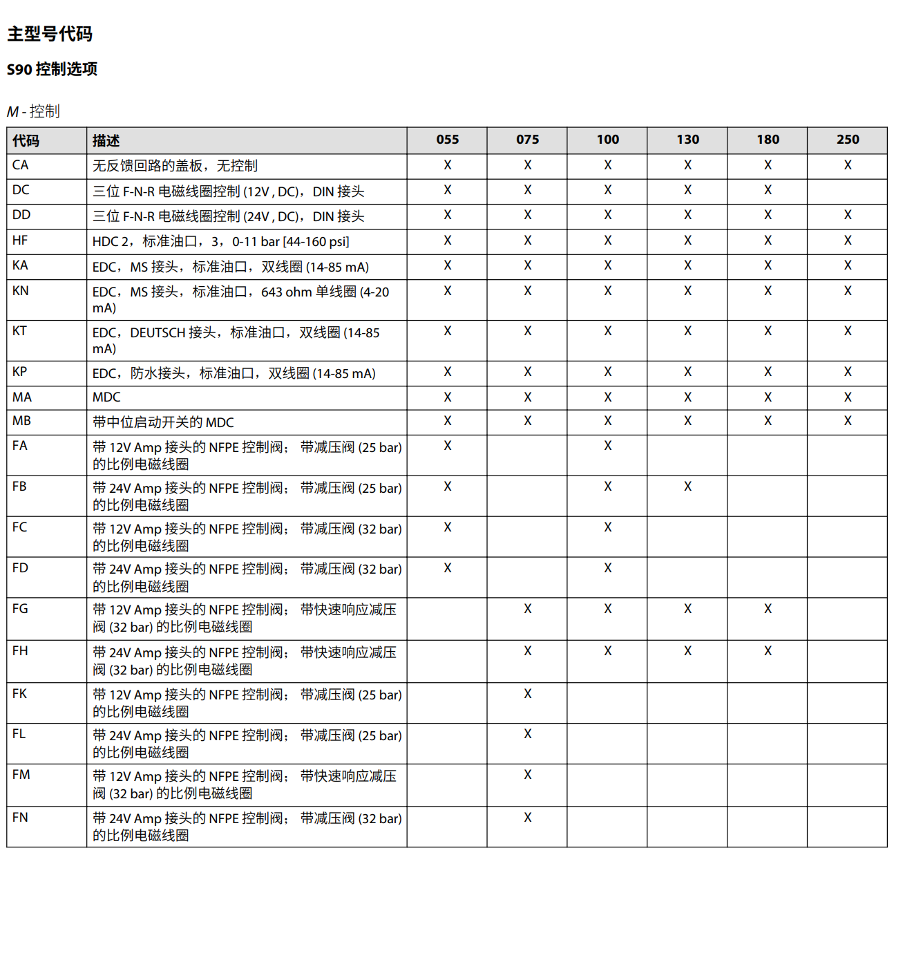 90 系列泵包含一個內(nèi)置集成式補油泵,為系統(tǒng)提供補充油液、冷卻油液以及控制油液流量。此系列 泵還配置了一些輔助安裝法蘭,用于串接輔助液壓泵。還提供完整的控制選項系列,以適應(yīng)各種控 制系統(tǒng)(機械、液壓、電子)的需求。